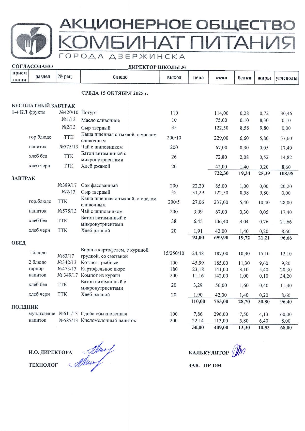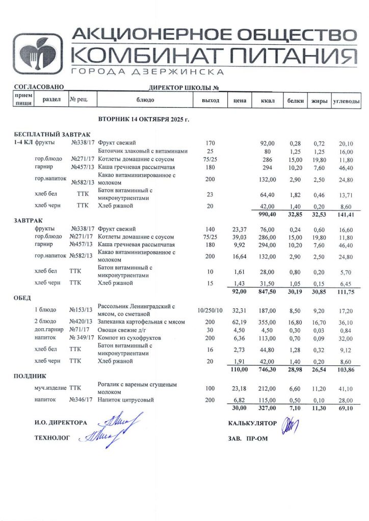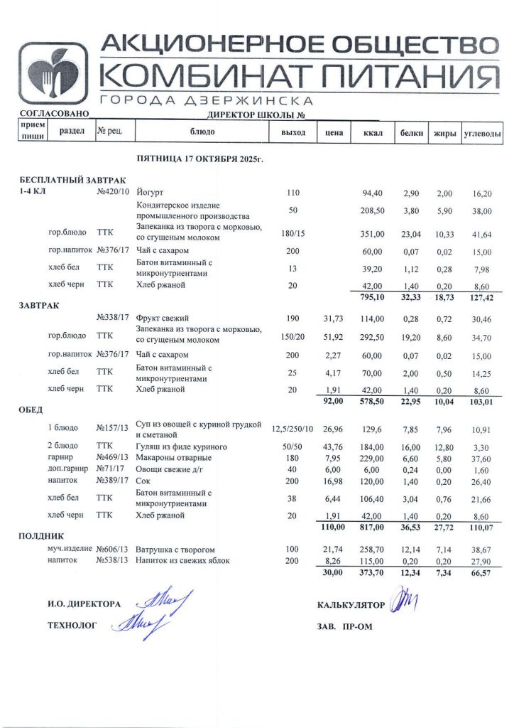 Школьное меню Цикличное 10 дневное меню 1-4 класс Цикличное 10 дневное меню 1-4 класс с ОВЗ Цикличное 10 дневное меню 5-11 класс Цикличное 10 дневное меню 5-11 класс с ОВЗ Меню с 13.10.2025 по 17.10.2025 посмотреть/скачать.