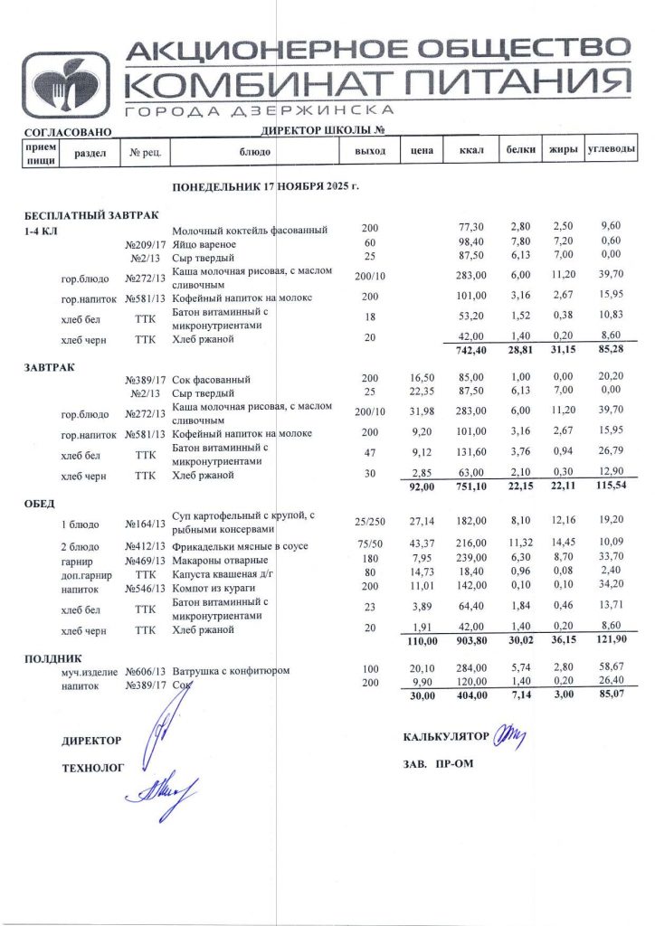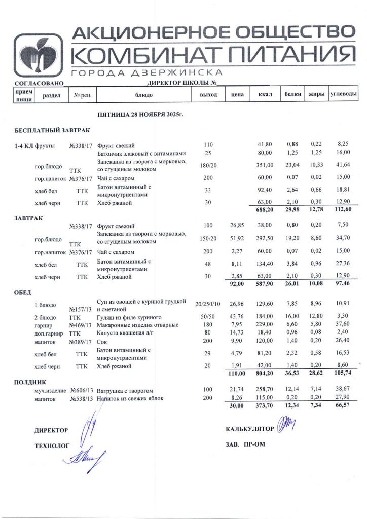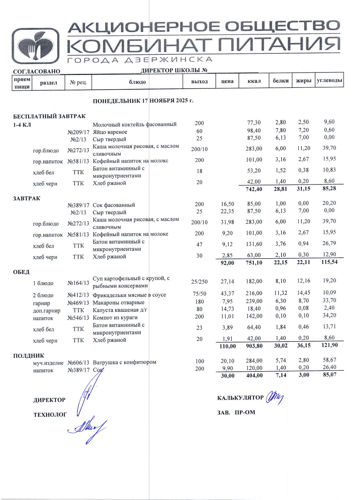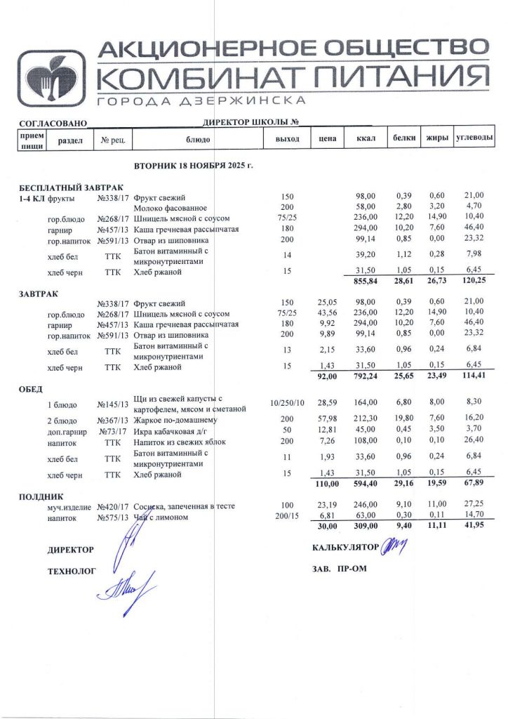 Школьное меню Цикличное 10 дневное меню 1-4 класс Цикличное 10 дневное меню 1-4 класс с ОВЗ Цикличное 10 дневное меню 5-11 класс Цикличное 10 дневное меню 5-11 класс с ОВЗ Меню с 17.11.2025 по 21.11.2025 посмотреть/скачать Меню с 17.11.2025 по 21.11.2025 школа № 21 посмотреть/скачать Меню с 24.11.2025 по 28.11.2025 посмотреть/скачать